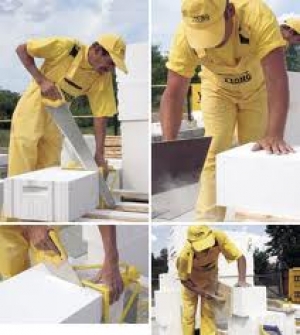 После возведения самого фундамента, и того как он уже будет готов к последуючим работам, можно приступать и к покладке пиноблоков. Понятно, что здесь так же нужно использовать раствор, как и когда класть с кирпича все. Положив первый ряд, можно через небольшое время приступать и ко второму. Нужно следить за тем чтобы все было постоянно ровно. Потому как кирпичи кладутся и их можно пристукать, они легкие и поэтому малоподвижны, совсем другое дело пиноблоки.