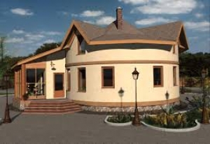 Круглый дом само собою с геометрической и практической стороны имеет свои особенности. Здесь проблема будет даже в том, как окна поставить правильно, как вставить двери и так дальше. Двери сложно будет круглые подобрать, но здесь можно сделать небольшой выступ и выровнять стену, а вот окна фигурные не проблема. Как и карниз в этот дом купить и много другого.